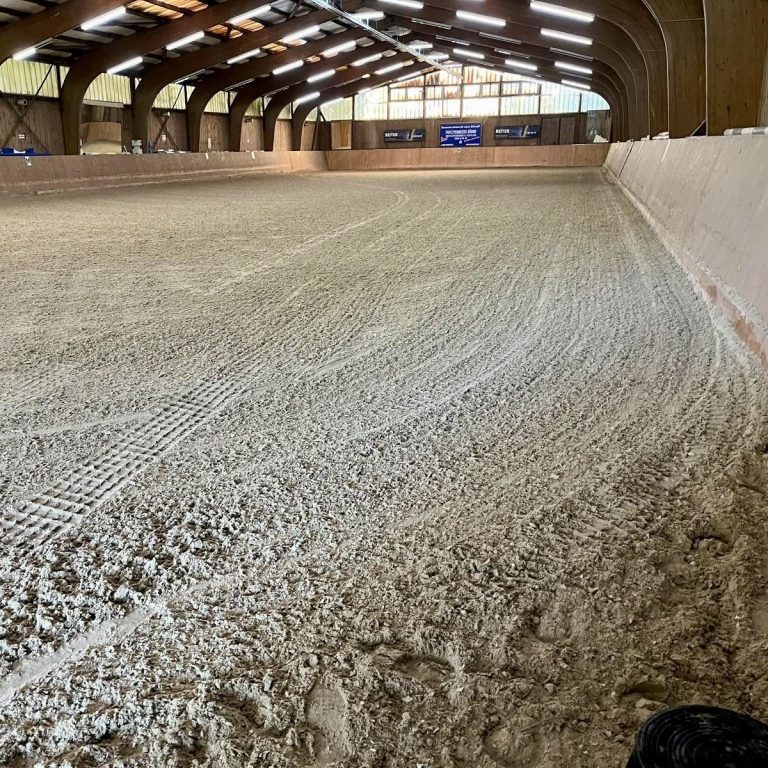 - Dressurhalle (ca. 20 × 60 m) mit Beregnungsanlage